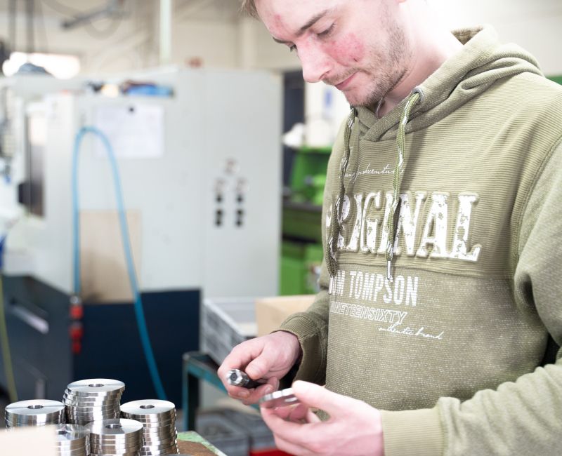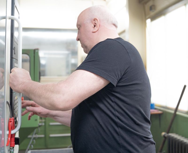 Unterstützt wird Marco Ewald von Annette Stange, die im Büro die Buchhaltung und Auftragsbearbeitung verantwortet. In unserer Werkstatt sorgt ein engagiertes Team von 13 erfahrenen Kolleginnen und Kollegen direkt an den Maschinen für Präzision und Effizienz.